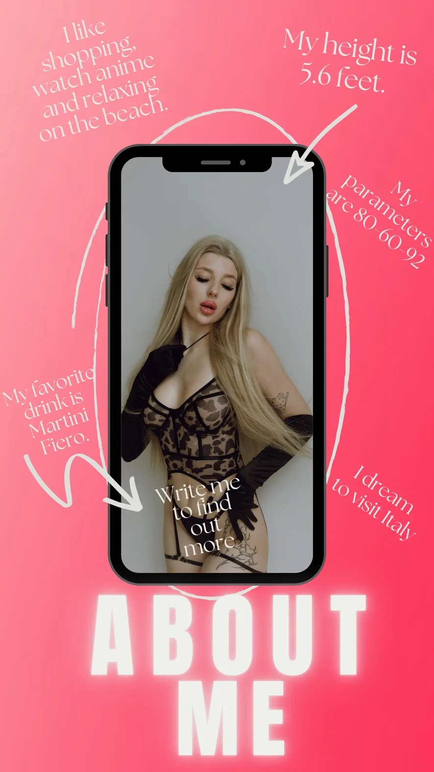❤️I love well-mannered men with a good sense of humor (I always say that if you managed to make me laugh, then you have already won 50% from me). I love generosity, dirty mind, interest in me❣️